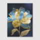 Um cartão de saudação floral, ousado e contemporâneo, com uma grande flor estilizada em tons de azul profundo, ouro e branco suave. O detalhamento texturizado, em forma de folha, nas pétalas e folhas dá à peça um efeito misturador metálico, criando uma estética moderna e luxuosa. Em relação a um fundo rico em marinhos, este design abstrato destaca a beleza da cor, textura e forma, fazer-o como uma peça de declaração atraente para qualquer estilo.