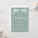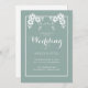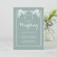 Trate o convite de casamento azul com texto branco e sotaques florais ao longo da borda fina. As cores e o texto são completamente editáveis on-line com alguns cliques, mas se você precisar de ajuda, entre em contato com o designer em ArtByLiz@gmx.com e a placa será personalizada para você sem custo extra.
