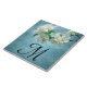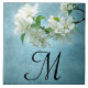 Flor Branco Azul Profundo Céu Floral Monograma País Monograma Azulejo Decorativo Inicial Personalizado