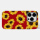 O Caso Chrysanthemum Sunflower para iPhone 14 Pro Max Girasol Capa de telefone é um belo design para todos que amam girassóis para personalizar seu telefone. Ele é projetado com flores amarelas sobre fundo vermelho.