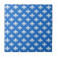 Este produto tem um teste padrão do símbolo da flor de lis em um fundo azul.