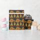 Um rolo de Papel de Moldagem Chic, com um padrão tradicional de Flor Lotus Egípcio em Vermelho Rusty, Verde e Amarelo Ouro em Preto. Parte da coleção Posh e Painterly "Egípcia", este padrão pode ser facilmente ajustado para ajustado qualquer Giftwrap.