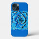 Capa de telefone em uma flor gigante e bela da camélia em tons de azul de cobalto e turquesa, acentuados com índio escuro e branco