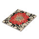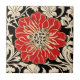 Azulejo cerâmico numa flor grande, vermelha, da camélia, num estilo inspirado no Art Nouveau, com fundo floral em bege sobre preto