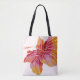 NewparkLane - Saco de Tote All-Over-Impressão, colorido e elegante, com uma flor de Hibiscus havaiana exótica em vermelho, rosa e laranja, com um fundo cor-de-rosa macio.