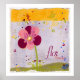 Trabalho de arte com a tradução espanhola e inglesa de "flor" : "flor".