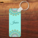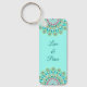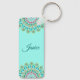 Personalize este Chaveiro de Mandala único "Um dos tipos"! Ela apresenta uma bela turquesa, rosa e verde Flor Mandala Design geométrica..... num fundo negro! Um Mandala é um Símbolo Espiritual e Ritual... Transformando o Universo de Um de Sofrimento em Um de Alegria e Felicidade! Design gráfico do artista Kerry Miller.