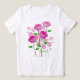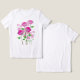 T-shirt branco com desenho de flor rosa suave simboliza gentileza e um coração puro.