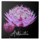 Azulejo cerâmico que mostra a foto de um conjunto de flores de Astrantia cor-de-rosa contra um fundo preto contrastante. Outros nomes incluem Masterwort e Pincushion de Hattie. Um design floral impressionante! Selecione o tamanho do seu azulejo. Faz uma bonito trivet de cozinha!