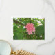 Flor de pluma brasileira rosa na frente de um cartões de agradecimentos saboroso