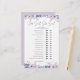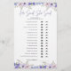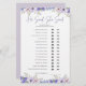 "Flor Roxo Ele Disse Que Disse Jogo do Chá de panela" é uma atividade encantadora e criativa para chás de panela. Este jogo apresenta belos designs de flores roxas que inspiram os hóspedes a esboçar seus vestidos de casamento dos sonhos. Com seu charmoso tema floral, esse jogo adiciona um toque de elegância à celebração. Deixem seus hóspedes mostrar seu talento artístico e imaginação com este divertido e engajador jogo de chá de panela!