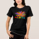 Aloha é escrita em cores vermelho, laranja, amarelo, verde, azul do arco-íris. Uma flor grande e brilhante, com uma explosão de pétalas coloridas incluindo azul, verde, amarelo, roxo, laranja, castanho, dá uma vibração de férias na ilha. Arte original de TamiraZDesign.