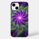 Uma flor de fantasia colorida e viva, arte fractal verde abstrato púrpura. Design para seu caso iPhone 14 e muito mais.
