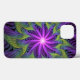 Uma flor de fantasia colorida e viva, arte fractal verde abstrato púrpura. Design para o seu caso iPhone 13 e muito mais.