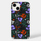 A "Flora Crepúscula" apresenta flores vibrantes e arrojadas em roxo, laranja e verde, colocadas sobre um fundo escuro. Este padrão marcante adiciona um toque de elegância e mistério, perfeito para qualquer espaço moderno.