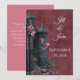 Esta ilustração de Princesa do Castelo Gótico da Dark Academia é uma peça central de tirar o fôlego para um casamento de conto de fadas sombrio. Contra um fundo marrom profundo e texturizado que imita a aparência de veludo envelhecido, a arquitetura de pedra cinza-carvão imponente parece ao mesmo tempo antiga e régia. Descendo em cascata pelas torres e florescendo na base da fortaleza estão cachos de Rosas Inglesas rosa empoeiradas e delicadas Flores de Cerejeira, proporcionando um contraste suave e romântico com os aguçados pináculos góticos. Com o castelo posicionado elegantemente à esquerda, o design deixa um espaço amplo e sombrio à direita, perfeitamente adequado para caligrafia em ouro ou prata.