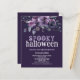 Florais Roxos do Orçamento Estranhosos Convite de Halloween. Um orçamento com um preço menor de 4,5 x 5,6" de semivrofe de 110 lbs (semelhante em espessura a um cartão postal). Convide seus amigos para uma Festa de Halloween Spooky com este convite estranho com vibrações góticas florais! O texto com os detalhes pode ser facilmente personalizado e você também pode alterar a cor desse texto e as cores de fundo na frente e no verso através da opção Clique para Personalizar mais, se desejar.
