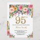 95.º Aniversário Floral Convite para Mulheres. Flor Floral de Aquarela. Dourada Glitter. Rosa, Amarelo, Laranja, Flor Roxo. Aniversário Adulto. Para mais personalização, clique no botão "Personalizar" e use nossa ferramenta de design para modificar este modelo.