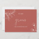 Um simples cartão floral para escrever uma mensagem pessoal e sincera para os seus entes queridos no dia do seu casamento. Personalizável com as suas cores favoritas (texto e fundo). Você pode adicionar uma mensagem no verso ou deixá-la vazio se preferir escrever manualmente a mensagem mais tarde. Para alterar os detalhes, clique em "Detalhes". Para mover o texto ou alterar o tamanho, a fonte ou a cor, clique em "Editar usando a Ferramenta de Design". Visualize o link de coleção nesta página para ver todos os itens correspondentes nesta bela design.