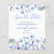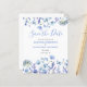 O floral azul de orçamento elegante salve a papelaria para o seu casamento. Fácil de mudar o texto. Design de flor silvestre de coloração aquosa delicada. Este papel é mais fino que o papel da placa.