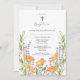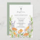Estes convites florais de batismo apresentam uma camada inferior de flores silvestres de cor d'água em tons de laranja, roxo e verde. Use os campos modelo para adicionar seus detalhes personalizados. Solicite cartões impressos on-line ou convites imprimíveis. Uma escolha elegante para temas florais. Para ver mais designs como esta, visite www.zazzle.com/dotellabelle Arte a aquarela exclusiva e design por Victoria Grigaliunas do Do Tell A Belle.