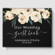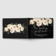 Um livro de hóspedes moderno e elegante para os seus convidados de casamento assinarem, usando o tema Floral Beige Blush on Black Wedding.