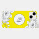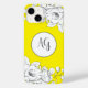 Chic e um fundo amarelo brilhante moderno, decorado com um arranjo floral branco delicado e moderno, no canto superior direito e no canto inferior esquerdo. Típica de caligrafia chica e elegante em carvão para o monograma personalizado do estilo medalhão.