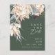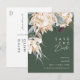 Nós projetamos este cartão-postal de Save The Date Floral Branco | Verde Escuro para completar seu casamento rústico tropical escuro. Com sua folhagem em aquarela boêmia e suas flores modernas boho de inverno, incluindo protea, dália e lótus seco, o design certamente destacará seu tema minimalista e sombrio em verde e branco. Altere o texto e adicione uma foto para torná-lo seu. Além disso, certifique-se de verificar o restante da coleção para encontrar itens coordenados que unirão todo o seu casamento! https://www.zazzle.com/collections/white_floral_collection-119896729923706651