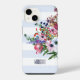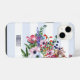 Capa de telefone de buquê de flor silvestre Floral sobre fundo listrado azul claro. Gráficos de flor selvagem abstrato artístico. Personalize sua capa de telefone com um monograma, nome, etc. Entre em contato com o designer para obter solicitações especiais.