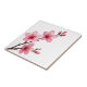 Este azulejo de cerâmica fofa apresenta bonito floração de cereja cor-de-rosa em fundo branco. As belas pétalas cor-de-rosa do florescente galho japonês são consideradas um símbolo de esperança e são conhecidas como encantos de boa sorte para novos começos.