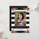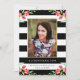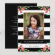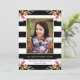 Convide amigos e familiares para a sua formatura com um convite de formatura Floral Chic. O design deslumbrante apresenta listras pretas e brancas, sotaques florais em aquarela rosa, moldura de foto dourada e espaços reservados para o seu texto personalizado e foto.