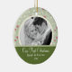 Nossos primeiros enfeites de natal da foto caracterizam um fundo floral cor-de-rosa verde bonito com uma banda preta! Personalize com sua informação e data e você são todos ajustam-se para ir! Presente datado maravilhoso da lembrança para seu primeiro Natal e uma grande adição a você coleção dos enfeites de natal.
