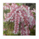 Azulejo cerâmico que apresenta uma foto-imagem do belo e fragrante, branco com flores cor-de-rosa do arbusto japonês Andromeda evergreen, também conhecido como japonês Pieris. Um design floral adorável! Selecione o tamanho do seu azulejo. Faz uma bonito trivet de cozinha!