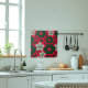 Azulejo de cerâmica floral de cor verde-vermelha com um design botânico elegante moderno com um toque tropical, perfeito para sotaques de Natal, primavera, outono ou decoração de inverno.