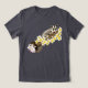 Um glider de açúcar bonito sentado em um galho de árvore com pequenas flores rosa, brancas e amarelas ao redor. O planador e as flores são desenhados num estilo de tatuagem num pano de fundo de preto