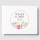 Este livro de hóspedes do chá de fraldas apresenta flores em tons de rosa e laranja. A palavra "Desejos por Bebê" é definida na tipografia tradicional. Use os campos modelo para exibir sua personalização. Visite www.zazzle.com/dotellabelle para ver o tema completo do Baby in Bloom chá de fraldas. Arte e design de aquarela únicas de Victoria Grigaliunas do Do Tell A Belle