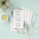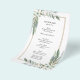 Este belo menu de casamento apresenta um design floral de cor d'água em tons de azul, verde e cinza. Seu texto personalizado é realçado em uma caixa de texto enquadrado. Este menu é fácil de personalizar usando o formulário modelo. As opções para alterar a fonte, o layout e as cores estão disponíveis no menu de edição avançada, acessadas escolhendo "Personalizar mais". O papel "básico" é um peso agradável com uma aparência brilhante e suave. É uma escolha perfeita para um menu que será descartado no final do evento.