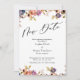 Se seus planos de casamento mudaram inevitavelmente, este elegante cartão floral pode ser a opção perfeita para você. Com uma letra de caligrafia de luxo, o cabeçalho diz "Nova Data". Os detalhes são flanqueados com flores soltas, artísticas, de aquarela em tons de roxo e laranja. Use os campos modelo para adicionar seus detalhes pessoais. 137 //