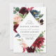 O convite para casamento floral elegante mostra seus nomes e detalhes de casamento enquadrados por flores rosas, cor-de-rosa-pincel e marinho azul-aquarela elogiadas por uma folhagem verde-luxuosa. O verso do convite apresenta um fundo de cor azul-d-água opcional marinho.