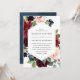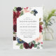 O convite para casamento floral elegante mostra os detalhes do seu casamento cercados por um quadro de flores roxas ricas, cor-de-rosa pincel, marinho azul, cor-de-água e folhagem verde. O reverso do convite apresenta um fundo de cor azul-d'água opcional do marinho.