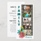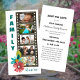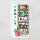 Front: Five photo templates for a filmstrip frame with floral cluster at the bottom. Invitation templates for your family reunion event on the back.