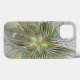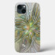 Flor de fantasia de arte fractal abstrato moderna, única e decorativa. Coloridos com tons de verde e ouro. Design para seu caso incomum do iPhone 13 floral e muito mais. Personalize o produto adicionando suas próprias iniciais ou monograma usando o modelo de texto.