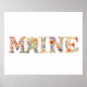 Floral Font State Art Impressão (Maine)