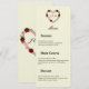 Elevate your reception tables with this refined wedding menu from the "Floral heart wedding - roses and reds" collection. This design features a delicate illustration of a heart crafted from vibrant red roses and wild greenery, encircling the couple's customizable initials.