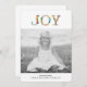 Compartilhe a alegria dos feriados enviando um belo e moderno cartão com fotos de férias. O simples Cartões de foto de Natal apresenta a palavra "Joy" com uma bela tipografia floral, texto personalizado e fotografia personalizada. Crie um design de tipo alterando o estilo da fonte, adicionando uma imagem e muito mais!