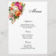 Menu card is shown with a lovely vivid color floral mix print, shown on the white signature matte card paper.