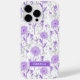 Floral Modern Girly Purple Flowers capas de iphone Name apresenta um bonito padrão de flores roxas em um fundo branco com seu nome personalizado na base. Personalizado editando o texto na caixa de texto fornecida. Elaborado por ©Evco Studio www.zazzle.com/store/evcostudio