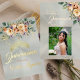 This RSVP card features a floral spray on pastel. The front has details for the recipient to fill out and the back has the young lady's name with a tiara. Designed to coordinate with the "Cream Floral on Pastels" Quinceanera Collection. To change details, click «Personalize». To move the text or change the text size, font, or color click «Click to customize further»