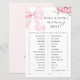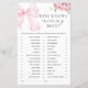 Floral pink bow "Who knows mommy best" baby shower game for a memorable party.