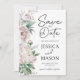 A cor d'água, a escova floral, peônias poeirentas de rosa salvam o convite de casamento.